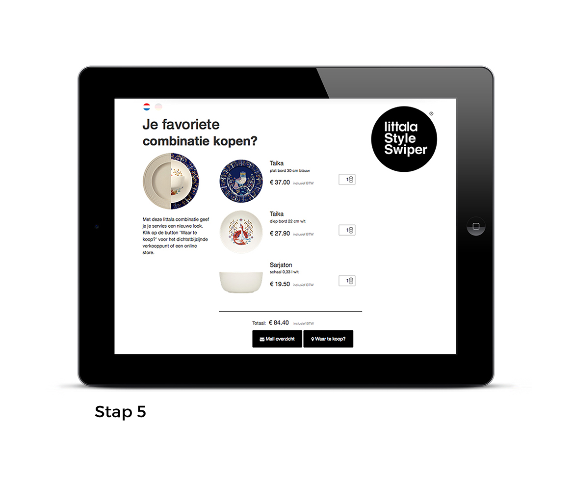De iittala Style Swiper: Een online app waarmee je jouw eigen servies gemakkelijk gematched wordt met servies van iittala. Op basis van een foto van jouw bord, geeft de app verschillende suggesties iittala servies dat erbij past. Daar kun je lekker doorheen swipen op zoek naar jouw ideale match!